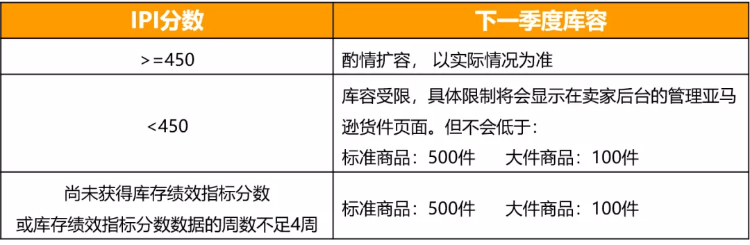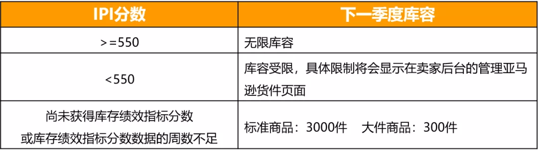 澳洲和阿聯酋站賣家需要注意:倉儲限制每個季度(或每三個月)評估一次。下個季度起,會基于您的庫存績效指標分數(IPI)對您的庫容進行相應的調整。每個季度只有一個固定的庫容量,持續一個季度不會變。具體評估標準如下: