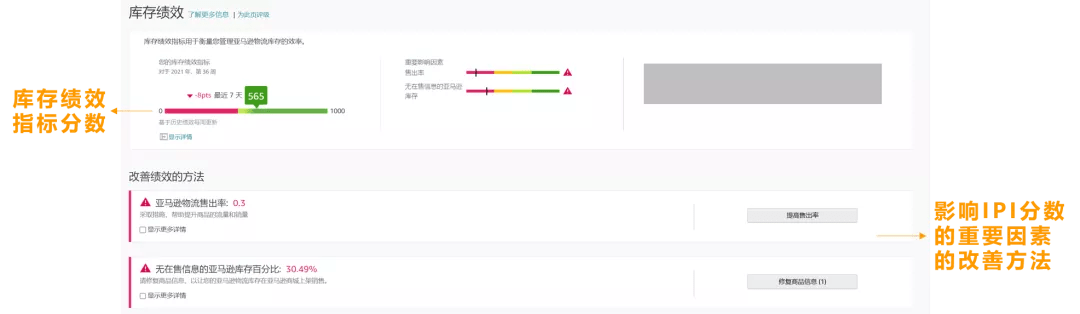 庫存績效指標和亞馬遜物流倉庫存儲限制息息相關,請實時關注庫存績效頁面中的績效指標分數,從而確保自己的亞馬遜物流庫存倉儲限制不受影響。