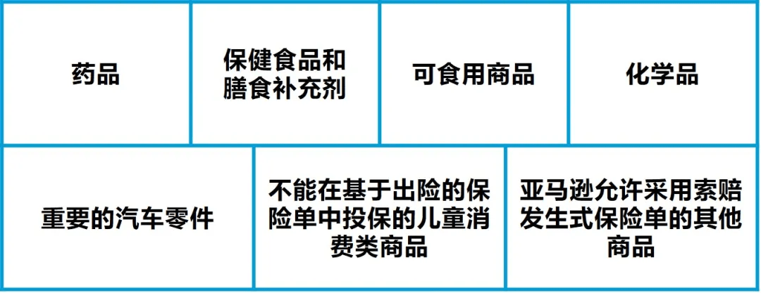 僅當您銷售以下商品的任意組合時,亞馬遜才會接受索賠發生式保險單: