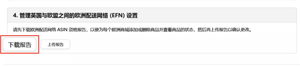② 您可以選擇部分商品退出:進入到【亞馬遜物流歐洲整合服務庫存】頁面,點擊“report”下載“商品狀態報告”,將部分商品退出歐洲配送網絡(EFN)